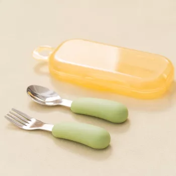 2PC Baby Silicone & Stainless Steel Spoon Fork Set with Storage Box